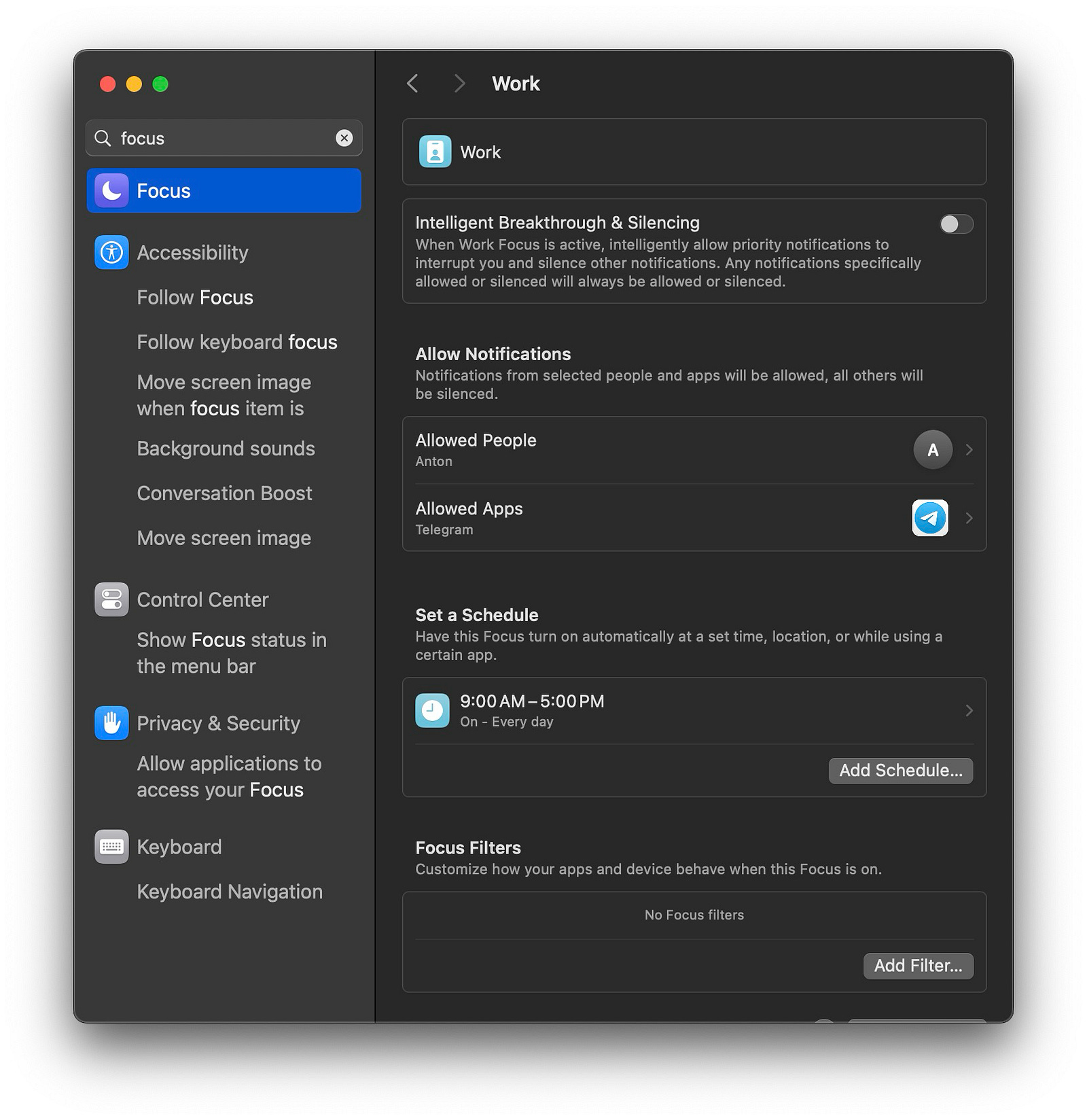 Notifications are designed to destroy your focus. If you let Apple’s defaults decide, your Mac will get spammed with notifications 10 times an hour, 7 days a week.