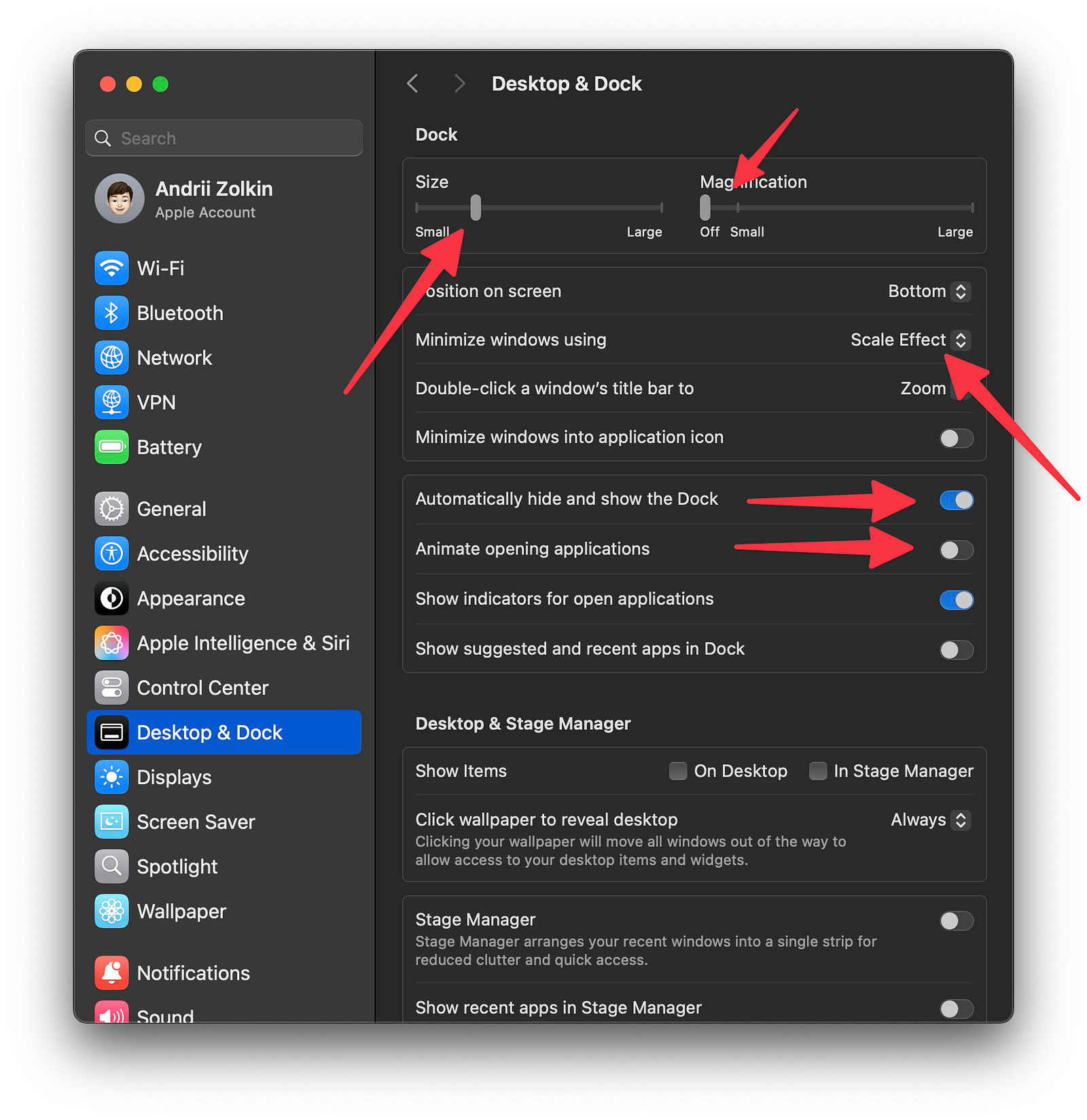 The solution: Go to System Settings → Desktop & Dock and disable “Animate opening applications” and “Magnification.” Your apps will launch instantly, without the cartoon flourish.