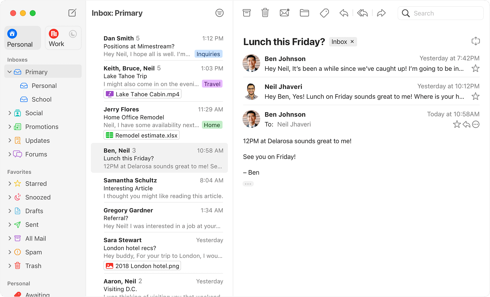 Why it’s better: because it’s built specifically for Gmail users. Beautiful, fast, and has all Gmail’s labels, threading, and smart features without having to open the browser.